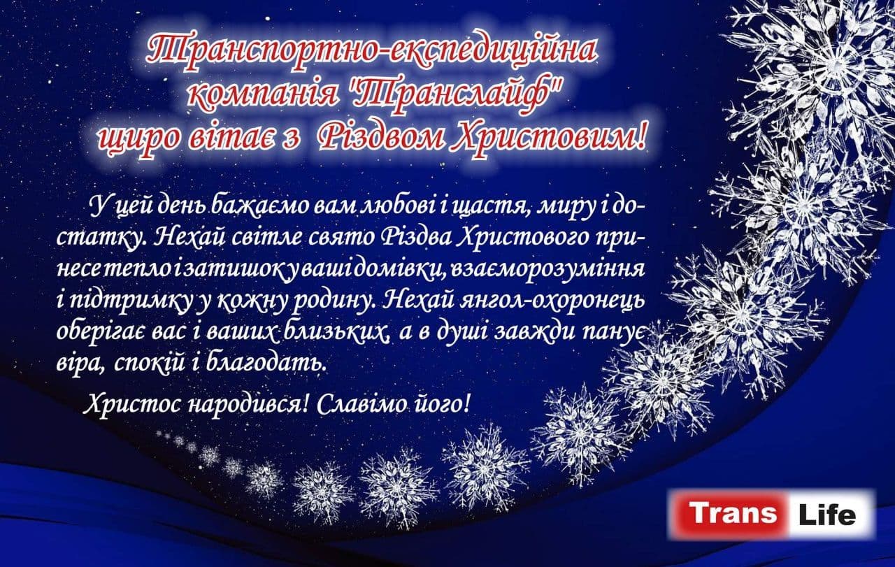 Транспортно-экспедиционная компания "Транслайф" поздравляет с Рождеством Христовым!